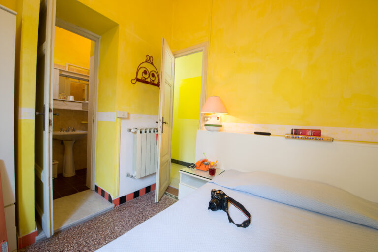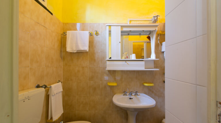 A differenza delle comuni singole, disponiamo di un comodo letto da 120×190 cm (misura francese), che garantisce un riposo superiore. Il bagno privato è ottimizzato negli spazi e offre box doccia, asciugacapelli, kit di cortesia e un morbido accappatoio con cambio settimanale incluso.